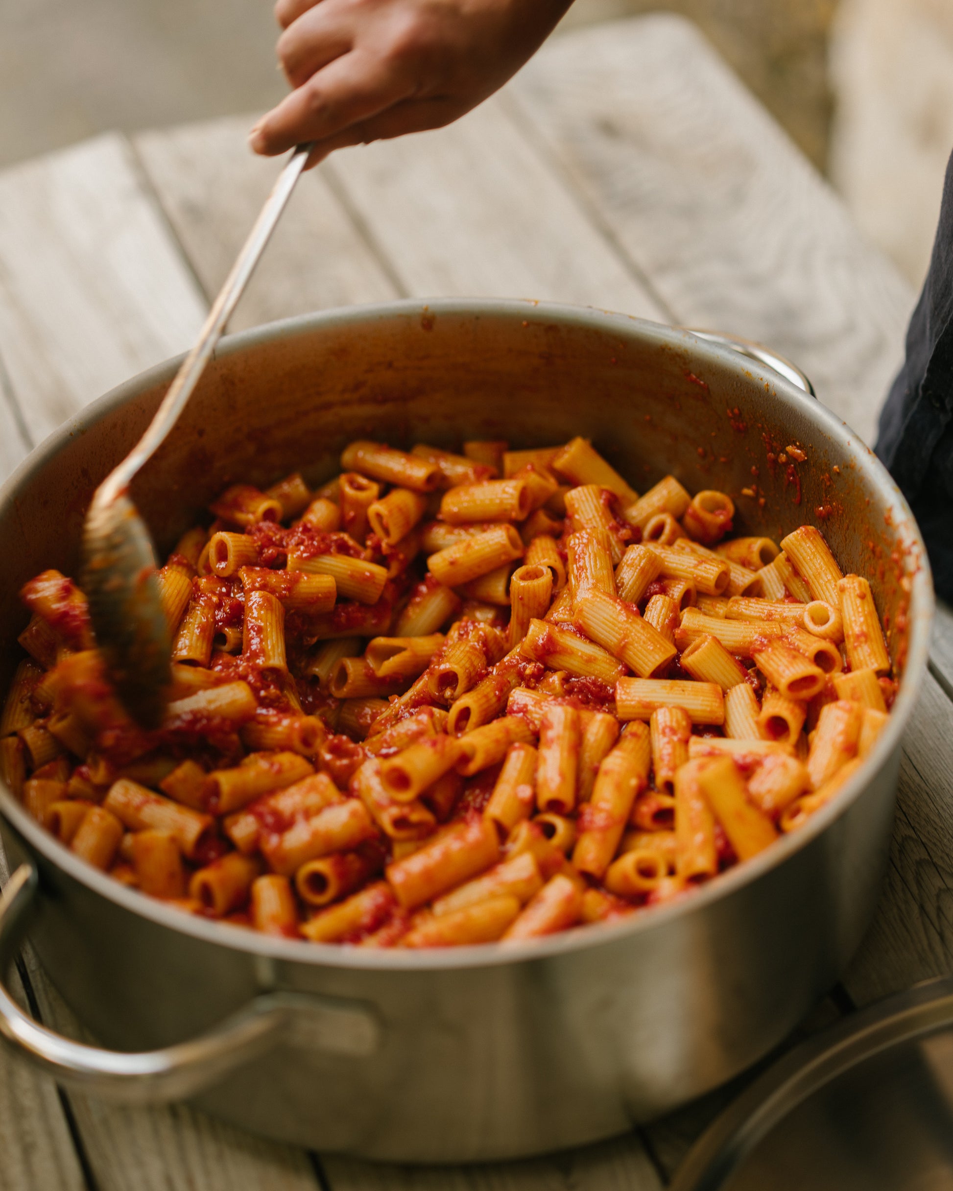 Passata: A blend of Cuore di Bue, Datterini, and San Marzano tomatoes from our terraced gardens on the Amalfi Coast. We run the seeds and skins through the strainer twice to ensure you are left with just pure pulp and juice, ready to go for any of Frank's methods.